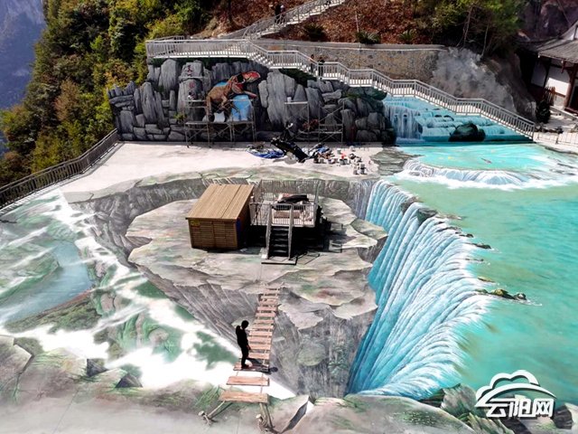 兇猛的恐龍沖出洞穴咆哮,湍急的瀑布落下萬(wàn)丈深淵……記者在施工現(xiàn)場(chǎng)看到,整個(gè)項(xiàng)目的主體部分已經(jīng)完成,地面和墻面上的3D彩繪已具雛形,栩栩如生,配合上周圍優(yōu)美的自然環(huán)境,藝術(shù)和自然在這里完美融合。與此同時(shí),工人們正在緊鑼旗鼓地進(jìn)行細(xì)節(jié)部分的繪畫,完成最后的收尾工作。據(jù)了解,墻繪團(tuán)隊(duì)自2月28日進(jìn)場(chǎng)以來,克服疫情影響加班加點(diǎn)進(jìn)行繪畫工作,目前正在進(jìn)行細(xì)節(jié)處理和不同視點(diǎn)的美化工作,有望提前完工,預(yù)計(jì)本月20日左右完工。