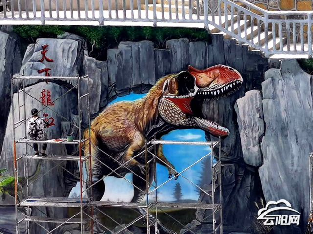 據了解,超級大秋千環景3D彩繪項目總面積達2000多平方米,主要以恐龍、峽谷、瀑布為主題,包括海豚、虎鯨這類趣味性的動物,以寫實的手法進行畫面營造,給游客呈現驚心動魄的感覺,完工后將成為國內面積最大的3D彩繪項目。