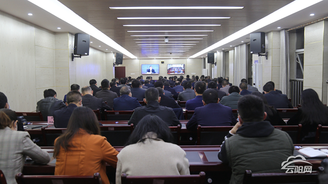 縣領導劉新民、張元斌在云陽分會場參加會議。