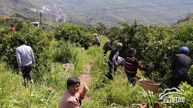 果林里,村民們挑著竹筐,正忙著摘果子;公路邊,收購的大車正裝車準備啟程發貨。