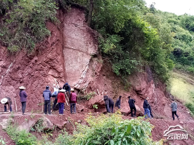 此時,公路上堆滿了山上滾落下來的石頭和樹木,把道路都封死了。考慮到公路完全阻斷,嚴重威脅到行駛車輛和群眾的安全,陳利松一行人向村民借來鐵鍬、鏟子、錘子等工具,冒雨對公路上堆積的樹木和土方進行全面清理。村里的群眾也自發(fā)前來幫忙,其中有70歲的組長王華波,73歲的老黨員董紹前,還有8名學生……大家都積極參與到垮方排障工作中。