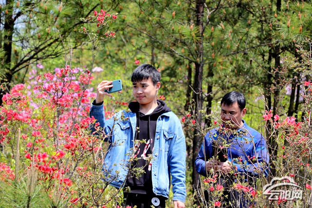 映山紅公園里,層層疊疊開滿了紅色、粉紅色的映山紅,有的正含苞待放,有的已完全綻放,紅得像火、粉得像霞,在枝頭上一朵挨著一朵,一朵緊靠一朵,擠滿了整個枝丫。微風拂過,映山紅隨風飄舞,讓人目不暇接,心曠神怡,不少游客陶醉在花叢中,拍照合影,留戀往返。“太美了,我要趕緊拍張照片發朋友圈,讓他們也一定要來看看這美景。”市民陶醉在花海中。