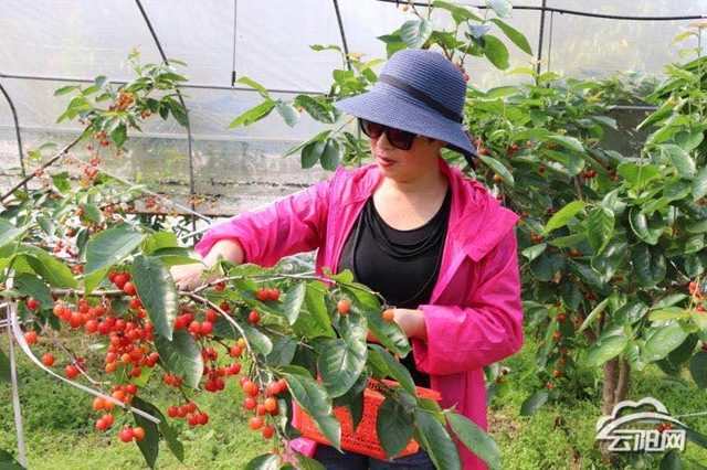 據云陽縣順水農業開發有限公司負責人熊道淵介紹,該基地栽種的是紅妃櫻桃,不僅個頭大,還色澤亮麗、口感好。此外,該基地采用大棚避雨栽培的模式,控制櫻桃生長的干濕度,有效防治病蟲害,達到綠色有機的標準,保證櫻桃的最佳口感。