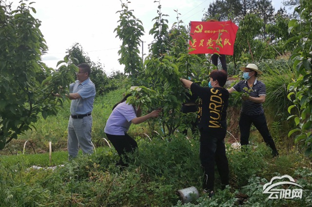 云陽網訊(通訊員 黃鈺涵)5月6日,歧陽小學黨支部走進蔈草鎮長嶺社區,與社區工作人員一起為梨樹疏果,幫助缺少勞動力的種植戶不誤生產。