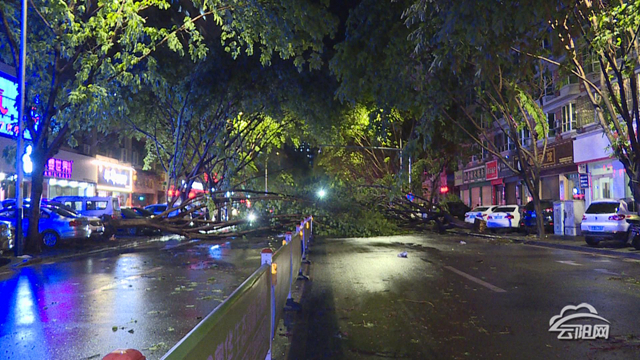 云陽網(wǎng)訊(記者 徐磊磊)5月16日,城區(qū)出現(xiàn)強降雨和大風(fēng)天氣,城區(qū)多處行道樹倒伏,部分路段交通一度中斷。險情出現(xiàn)后公安、消防、市政等部門積極響應(yīng),組織力量連夜開展清理工作。