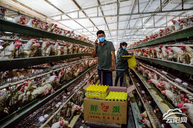云陽網訊(通訊員 梁國華)6月5日,在雙土鎮長保村五組養雞場,彭海林和媳婦吳桂英正在收雞蛋。