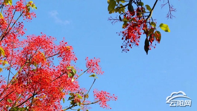 藍天為襯,舒展的花枝勾勒出一幅幅唯美的畫卷