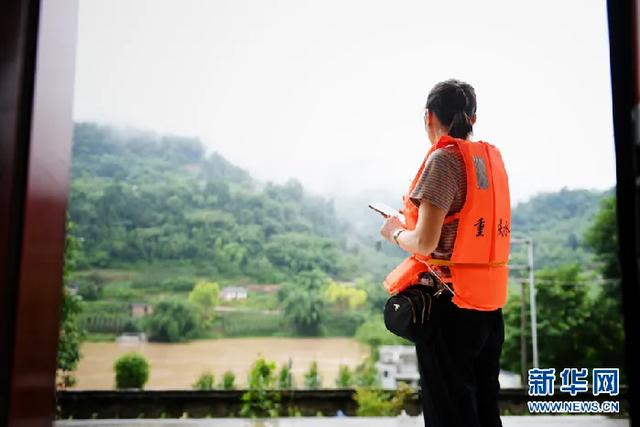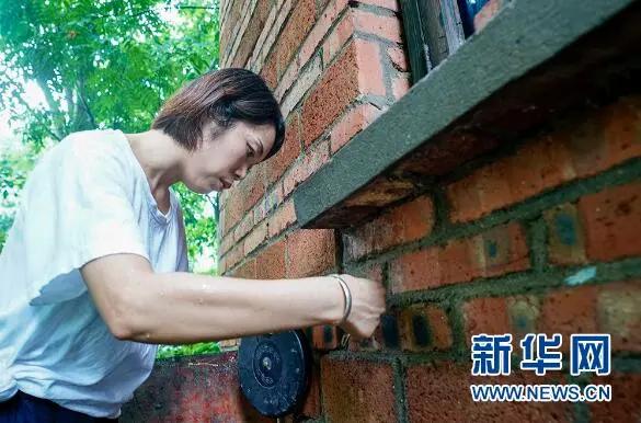 地質災害監測員侯芳對一處農房的墻上裂縫寬度進行測量。