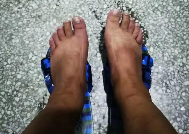 由于在水中長時間侵泡,楊勝前回到宿舍脫下鞋,十個指甲已經被水泡得發白。