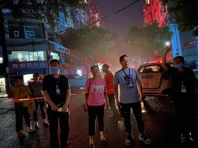胡光焱(左三)在抗洪一線熬夜奮戰。