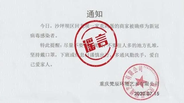 謠言:沙坪壩區回龍壩一家賣雞蛋的商家被確診新冠肺炎
