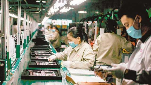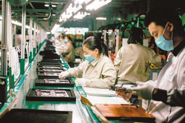 上半年,璧山區聚力發展經濟,當地電子配套企業訂單總體較去年同期增長約20%。圖為重慶璧山區大泰科技生產車間,工人正在生產線上工作(攝于3月13日)。首席記者 崔力 攝/視覺重慶