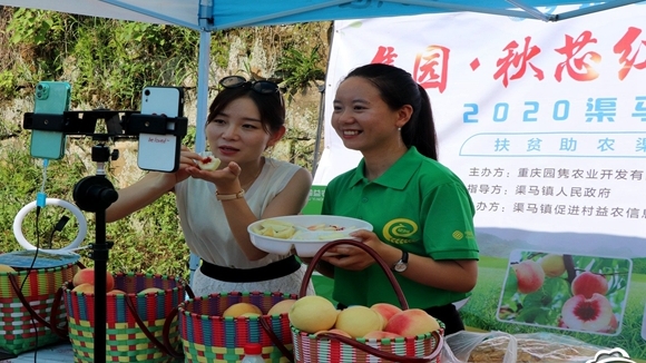 8月10日,記者來到渠馬鎮(zhèn)促進(jìn)村桃園基地,一眼望去,果實(shí)累累,枝頭掛滿了白里透紅的桃子,整個(gè)桃園都彌漫著桃香。當(dāng)天,果園的銷售負(fù)責(zé)人葉紅梅開啟線上直播,為自家的農(nóng)產(chǎn)品代言。