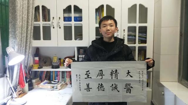 她酷愛傳統文化,堅持練習書法、誦讀5年多,不僅在舞臺上傳播著長征精神,愛國情懷;還開啟班級直播《小胡教誦讀》。在抗新冠疫情中,用書法朗誦在同學中傳遞正能量;
