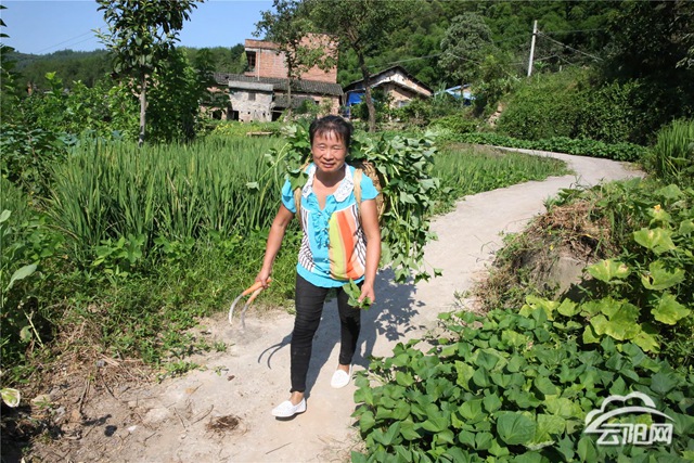 村道彎彎繞進(jìn)山,房前屋后農(nóng)戶忙。在南溪鎮(zhèn)青山村,一位身材瘦小的農(nóng)婦背著滿滿一背簍紅薯藤爬坡上坎,身后緊跟著一名男子,走路時一瘸一拐。盡管行動不便,但他用雙手緊緊托住背簍底部,兩人一前一后往前走。農(nóng)婦時而回頭看看身后的男子,眼神溫柔而堅(jiān)定。