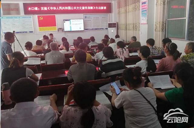 云陽網(wǎng)訊(通訊員 易守菊)8月25日,水口鎮(zhèn)就《重慶市實施〈公共文化服務(wù)保障法〉辦法》進(jìn)行了專題解讀,縣圖書館相關(guān)科室負(fù)責(zé)的老師、文化站工作人員、水口夜合社區(qū)及4個村的村民群眾60余人參加了培訓(xùn)專題解讀學(xué)習(xí)。