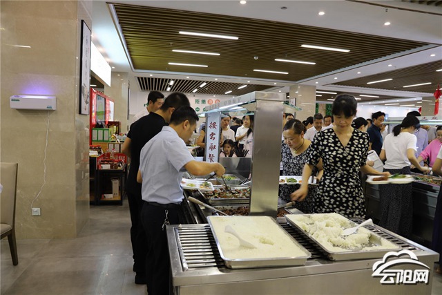 中午12點(diǎn),機(jī)關(guān)職工食堂內(nèi),前來就餐的職工有序打餐就餐,各類反對浪費(fèi)、節(jié)約糧食的宣傳標(biāo)語格外醒目。