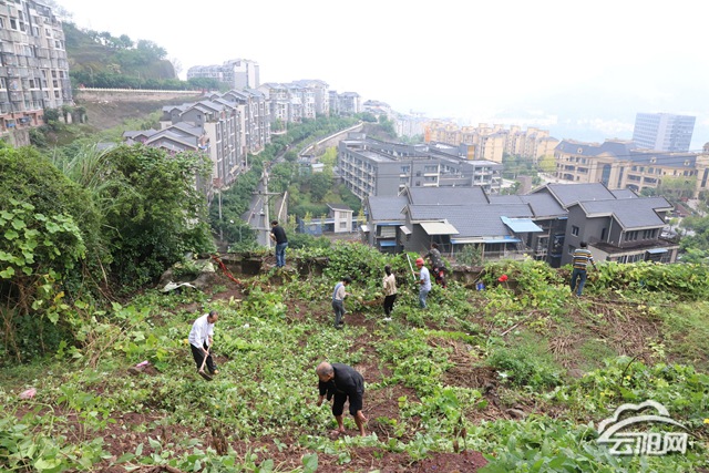 云陽網訊(記者 王月園 實習生 李歆宇)9月15日,雙江街道、縣城管局組織工作人員來到寨壩加油站旁的閑置地,開展鏟菜復綠行動,清理地塊內居民擅自耕種的農作物。