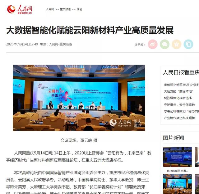 9月14日,2020線上中國國際智能產業博覽會——“云陽有為,未來已來”數字經濟時代廣告新材料創新應用云陽高峰論壇在重慶舉行。