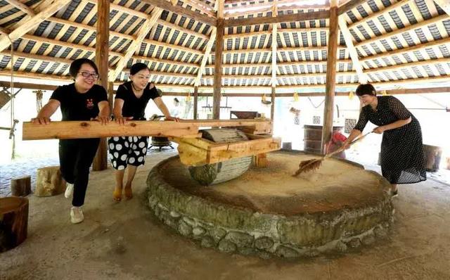 讓游客們在這里搗米、鋸木......