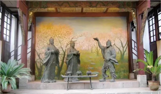 桃園結義的冰涼雕像背后
