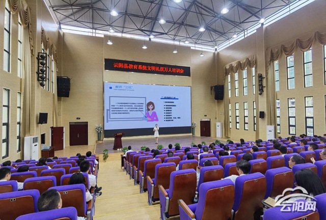 據了解,本次云陽縣教育系統文明禮儀萬人培訓會分為主會場和分會場。教委機關、直屬事業單位干部職工,青龍小學、紫金小學教職工,各教育督導站站長及督導員在主會場參加培訓,全縣其他學校教職工在本校分會場通過視頻會議方式參加培訓。