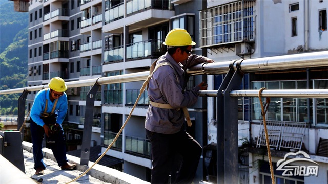 在一標(biāo)段施工現(xiàn)場,記者看到,現(xiàn)場一片繁忙,高高聳立的塔吊在高空來回轉(zhuǎn)動,忙著建設(shè)材料的吊運(yùn);地面上,工人們忙著進(jìn)行箱梁鋼筋綁扎、人行道鋪裝等。