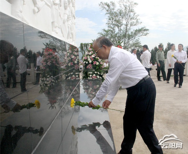 烈士陵園內,松柏長青,氣氛肅穆。革命烈士紀念碑巍然聳立,正中央“人民英雄永垂不朽”八個大字,熠熠生輝。紀念碑前,600多名社會各界代表手持鮮花,列隊肅立。隊列之前,以中共云陽縣委、縣人大常委會、縣人民政府、縣政協,駐云各部隊,各民主黨派、工商聯和無黨派人士,各人民團體和各界群眾,軍烈屬和老戰士,全縣少先隊員名義敬獻的9個大型花籃一字排開,寄托著社會各界對英烈的深切緬懷。