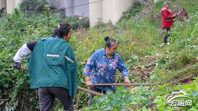 云陽網訊(實習生 譚啟云)10月30日,在青龍街道楊沙社區金科西南側一線安置房坡地,十幾名工人正忙著對坡地里的青菜、紅薯等農作物進行鏟除,再挖坑把土壤松散后將樹苗種植下去,一棵棵樹苗搬進了“新家”。