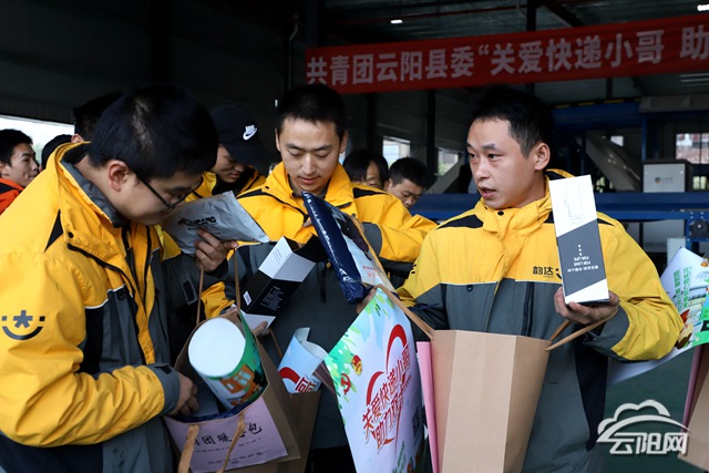 活動當天,團縣委組織工作人員來到云陽公共物流配送中心,進行實地調研,深入工作現場,近距離了解快遞從業青年的工作、生活情況,為非公快遞企業團組織現場授牌,還為來自順豐、中通、圓通、申通、韻達、百世快遞等快遞公司的60名優秀快遞從業人員代表送上防寒手套、愛心雨衣、保溫杯等“團團暖心包”。