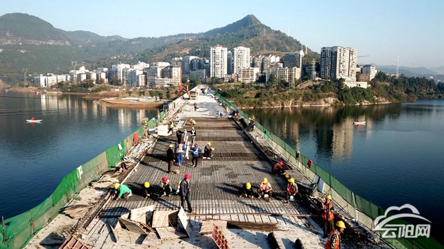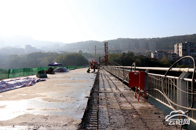 施工現場,工人正在緊張、有序地鋪裝橋面。“我們有90多個工人加班加點地工作,接下來將按照上級要求,年底前保證全橋順利通車。”雙江大橋維修加固工程項目經理杜華說,云陽雙江大橋維修加固項目進度已完成90%,已接近恢復全線貫通。