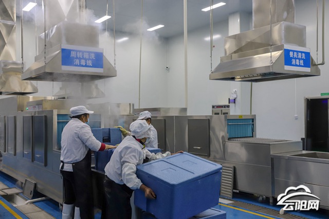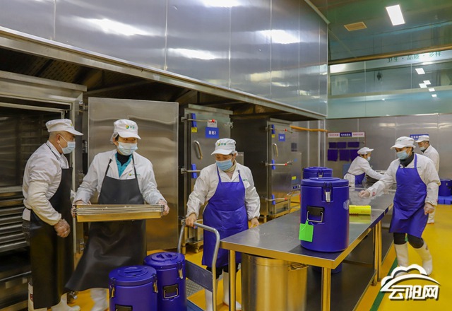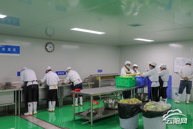 “‘中央廚房’的流程是從農民手中把食材采購回來,經檢驗檢測合格后,再通過毛菜處理、切配處理、熱廚加工,經配餐、裝箱、打包,通過保溫箱保溫車,再集中供出去。” 云陽民康餐飲服務有限公司相關負責人說。