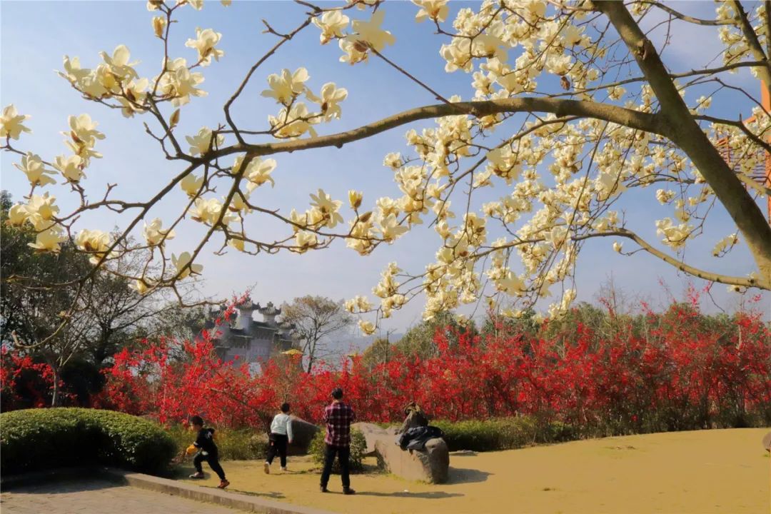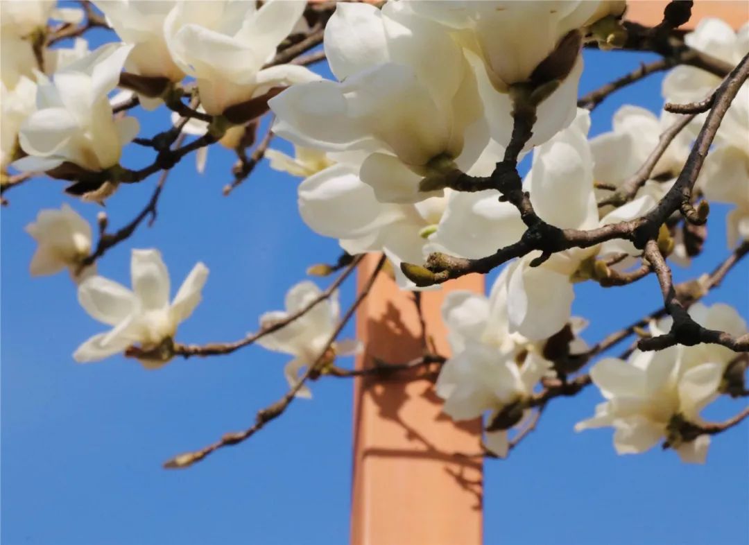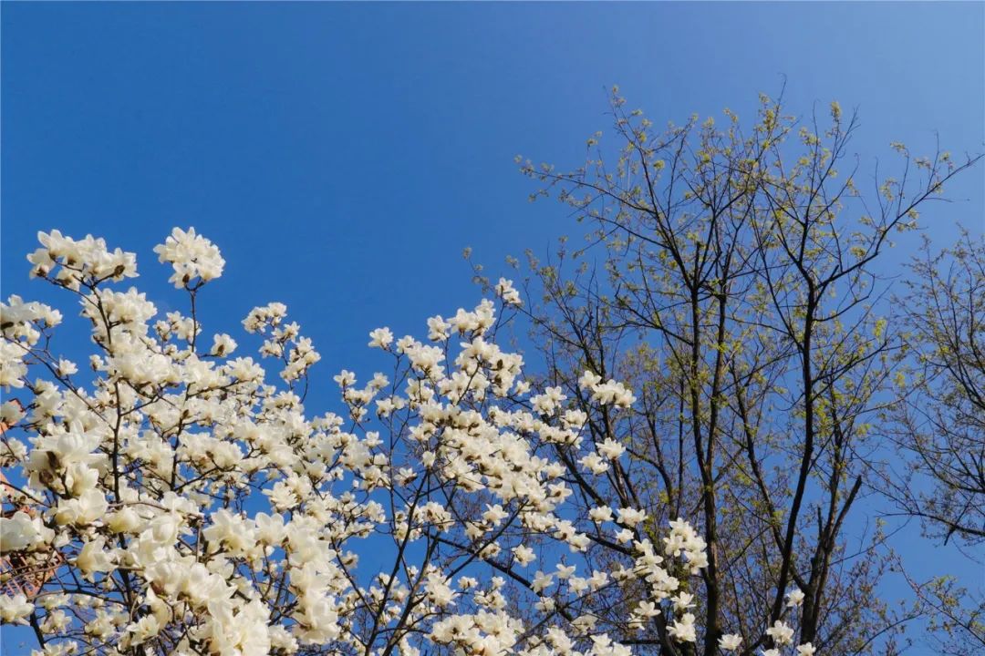 在城區云頂公園等地的白玉蘭正唯美綻放