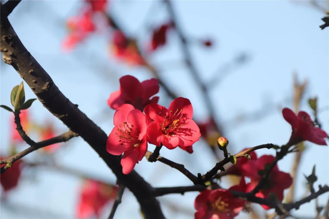 藍天為襯,花枝“作畫”