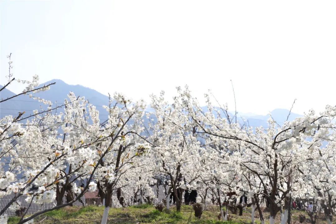 幾百畝櫻桃花綻放在田野村落間