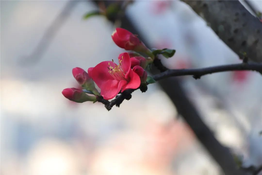 紅梅那一抹紅點亮了月光草坪的春天