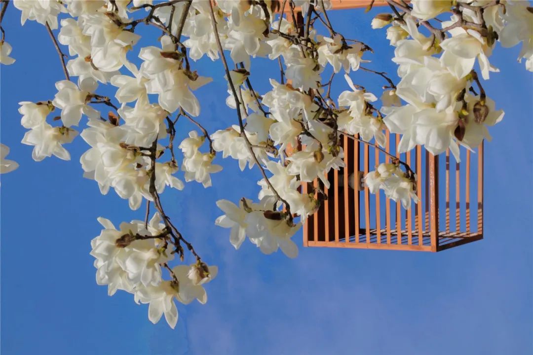 朵朵玉蘭花兒優雅寧靜地盛開在枝頭
