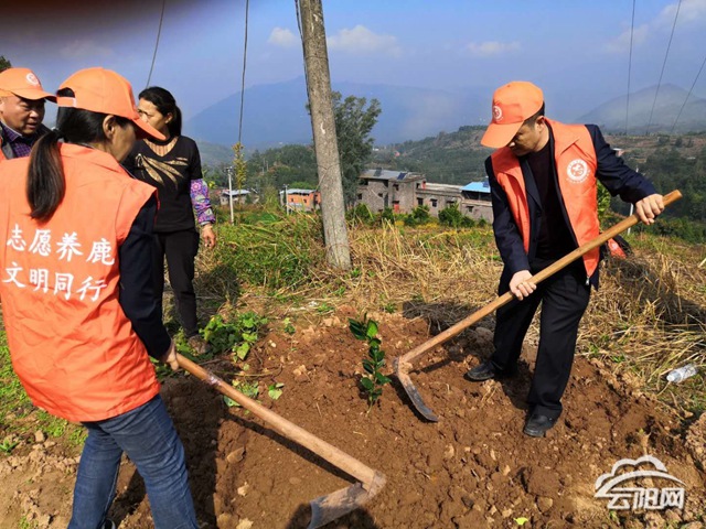 此次活動結合養鹿鎮柑橘產業,以栽植柑橘樹苗為主。在新禾村植樹點,鎮村干部興致勃勃地投入到植樹活動中,有的挖坑,有的扶苗,有點澆水,充分展現了團隊協作的力量。