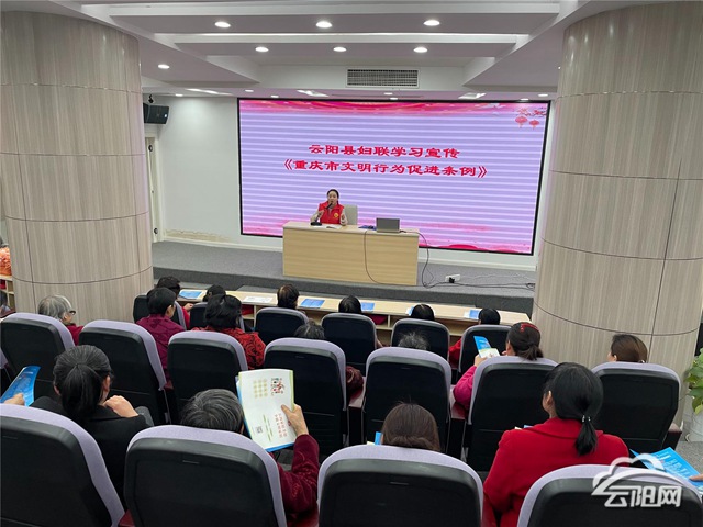 云陽網訊(記者 王月園)3月23日,縣婦聯聯合縣委宣傳部在縣婦女兒童活動中心開展文明行為進家庭宣講活動,學習宣傳《重慶市文明行為促進條例》,引導市民說文明話、辦文明事、做文明人。