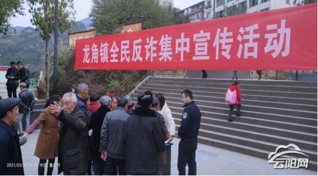 云陽(yáng)網(wǎng)訊(通訊員 張容容)近日,龍角鎮(zhèn)深入村社區(qū)、學(xué)校、醫(yī)院、銀行、商戶、農(nóng)貿(mào)市場(chǎng)、居民樓棟等地廣泛開(kāi)展防范電信網(wǎng)絡(luò)詐騙宣傳,利用趕集日集中開(kāi)展全民反詐宣傳活動(dòng),讓轄區(qū)人人參與全民反詐專項(xiàng)行動(dòng)。