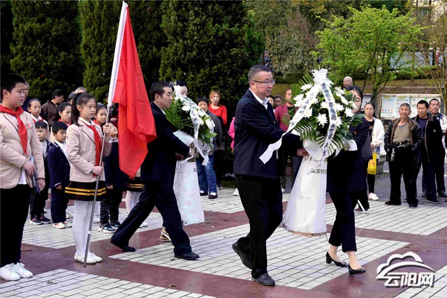 全校黨員教師及部分學生代表徒步到明德廣場革命烈士碑及彭詠梧、江竹筠烈士紀念銅像前,進行掃墓紀念活動。伴隨著《獻花曲》,老師們向革命烈士紀念碑敬獻花籃和鮮花,學生們向革命烈士紀念碑敬獻了自己手工制作的小白花,向革命烈士默哀。并莊重宣誓,聆聽教師講述革命先烈事跡,深刻感受革命先烈為民族解放、國家富強而犧牲的崇高革命精神。一起緬懷烈士的英雄事跡,表達自己對革命烈士無比崇敬的心情。