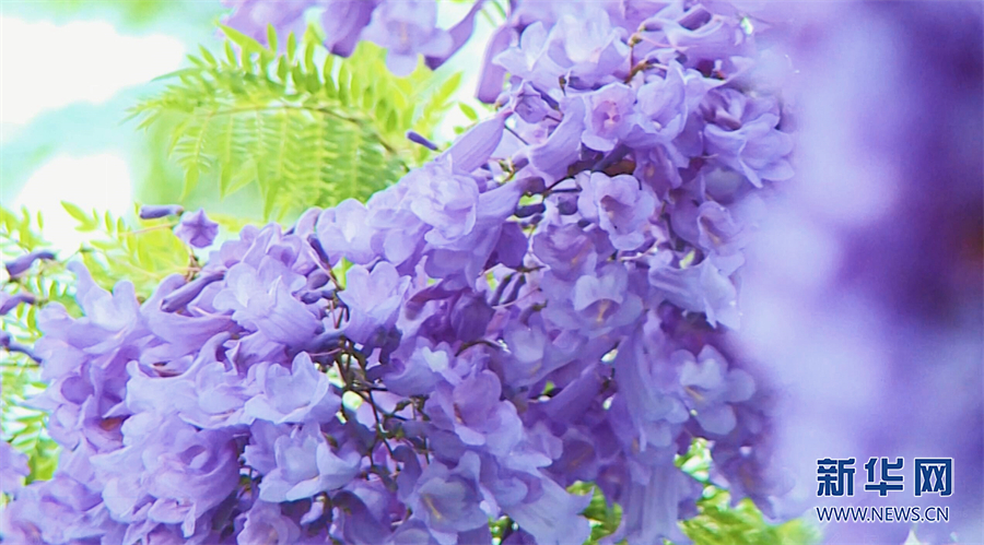 藍花楹敲開了夏天的門扉,吸引市民、游客駐足拍照賞花。新華網發(吳大維 攝)