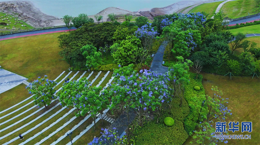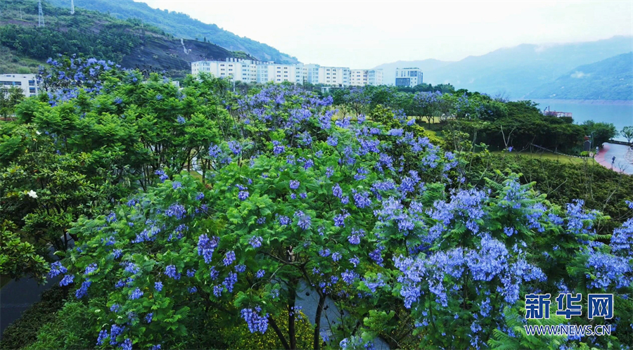 初夏時節,重慶市云陽縣長江之畔藍花楹如期綻放,上演起一場“紫色浪漫”。新華網發(吳大維 攝)