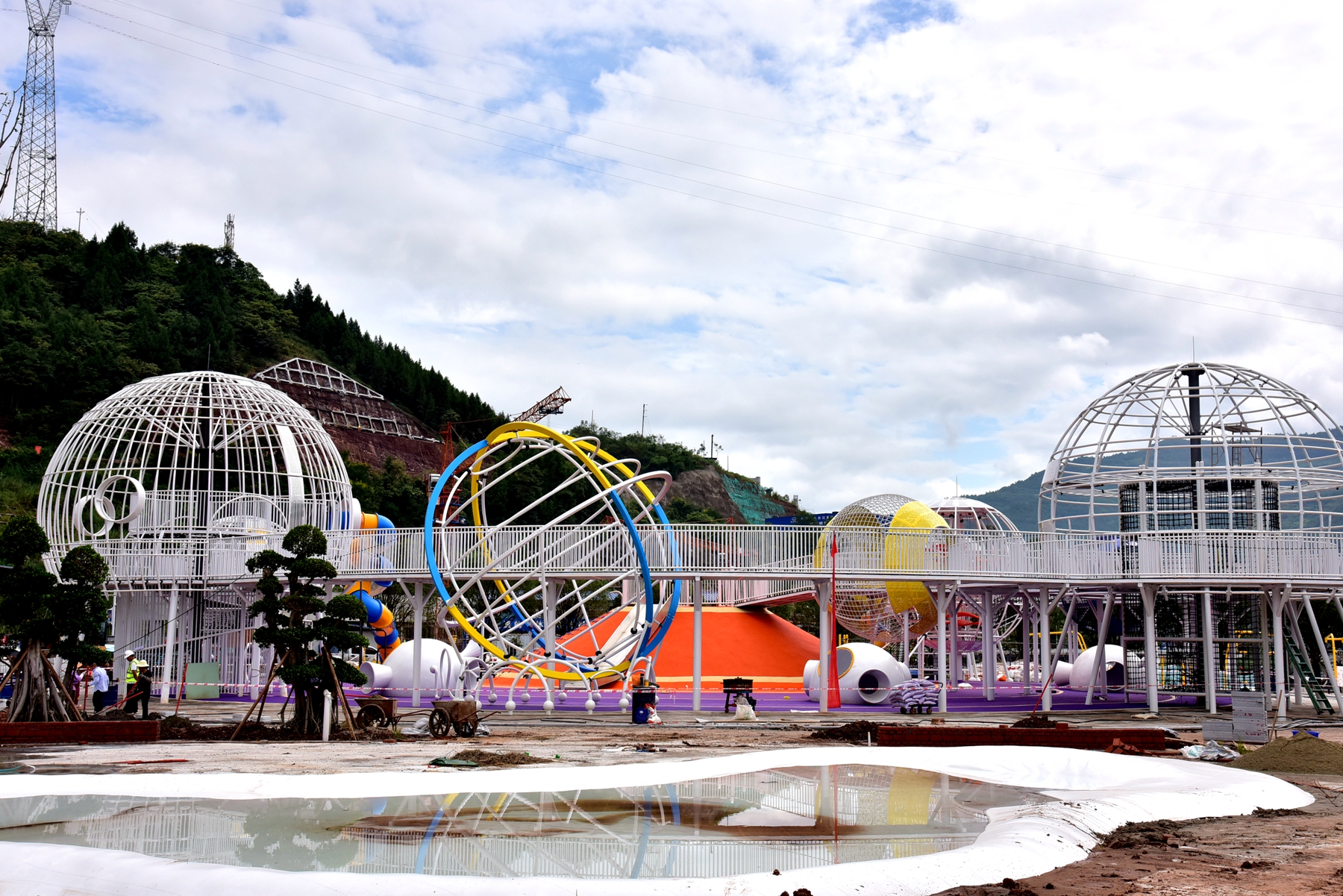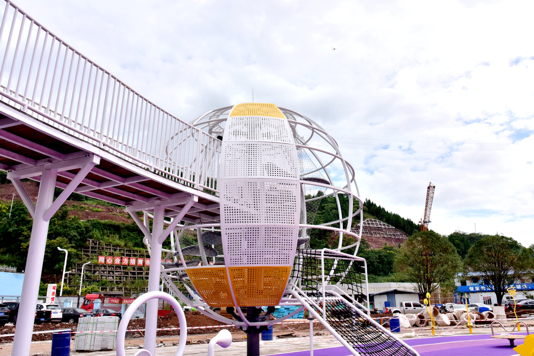 自今年1月份開工建設以來,彩云陽光兒童游樂園項目嚴格按照工期表,高質高效推進建設進度。目前該游樂園土建主體已經完工,正在進行路面鋪裝和綠化,以及建筑物的外裝飾;各項游樂設備的主骨架即將安裝完畢,下一步將進行設備投入使用前的安全檢查和調試工作,9月28日將建成開放。