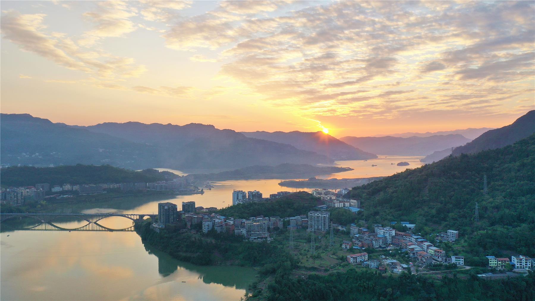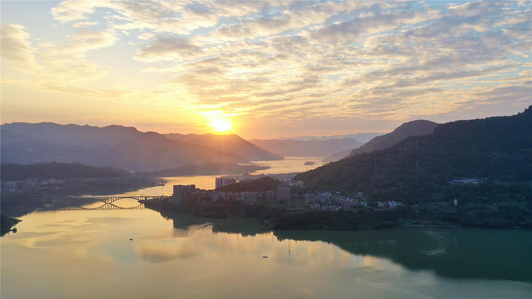 云陽網(wǎng)訊(記者 吳大維)時下,三峽水庫蓄至正常蓄水位175米,蓄水到位以后,云陽澎溪河也進入了最美時刻。湖面波光粼粼,岸邊白鷺公園青山蒼翠,陽光灑下,樓宇倒映湖中。湖光、山色、高樓相映襯,分外美麗。特別是在傍晚,平靜的湖面被夕陽染成金色,與遠處的雙江大橋、城市建筑共同構(gòu)成了一幅如詩的畫卷。