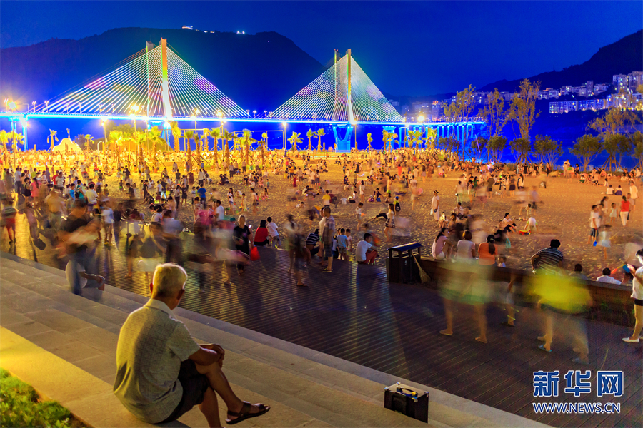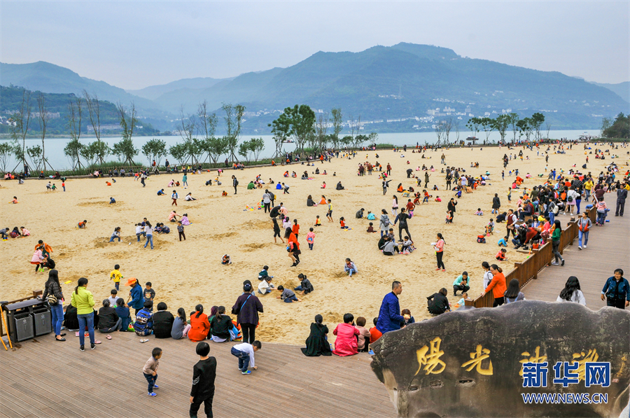 云陽(yáng)環(huán)湖綠道之上,“陽(yáng)光沙灘”是一個(gè)熱門打卡地。這里的沙子帶著咸咸的海風(fēng)氣味,是從福建漳州穿越千山萬(wàn)水,來(lái)到位于長(zhǎng)江之畔的內(nèi)陸城市云陽(yáng)。建設(shè)“陽(yáng)光沙灘”,原本云陽(yáng)只是為找回因三峽工程而淹沒的逝去老城區(qū)江岸沙灘記憶,沒承想?yún)s插柳成蔭,憑借“相比濱海場(chǎng)地少了大風(fēng)和暴曬”的優(yōu)勢(shì),將“陽(yáng)光沙灘”建設(shè)成了國(guó)內(nèi)沙灘排球賽事的重要舉辦場(chǎng)地之一。資料圖 新華網(wǎng)發(fā) 劉磊 文