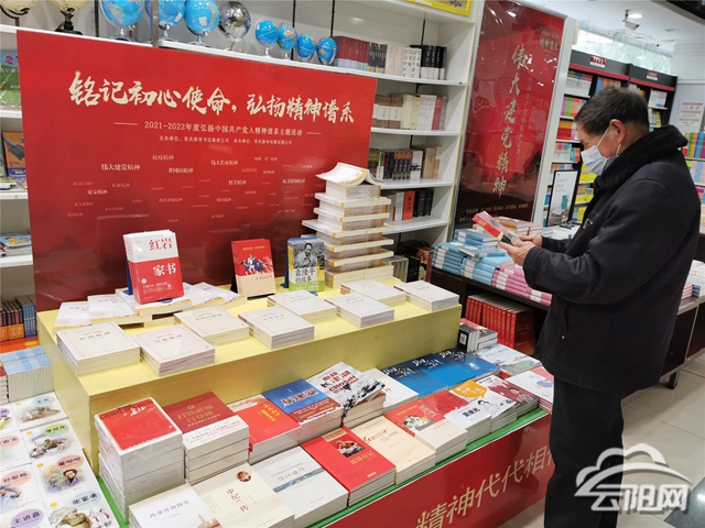 記者在云陽新華書店看到 ,書店精選了市場上主題最貼切、版本最權威的41家出版社的118種內容涵蓋黨史理論、英雄人物等多個方面的優秀圖書,開設了專區集中陳列展銷。