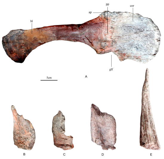 代輝介紹,元始巴山龍化石材料來自云陽恐龍動物群已發(fā)掘形成的沙溪廟組下段原址化石墻,包括肩胛骨、烏喙骨、背椎、尾椎、股骨、脛骨、腓骨、蹠骨、劍板、尾刺等部位的骨骼化石。