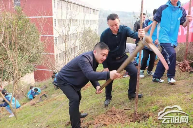 云陽網訊(記者 李歆宇)3月12日,龍市初中到學校后山及操場外圍開展“我為祖國植10棵樹”活動。