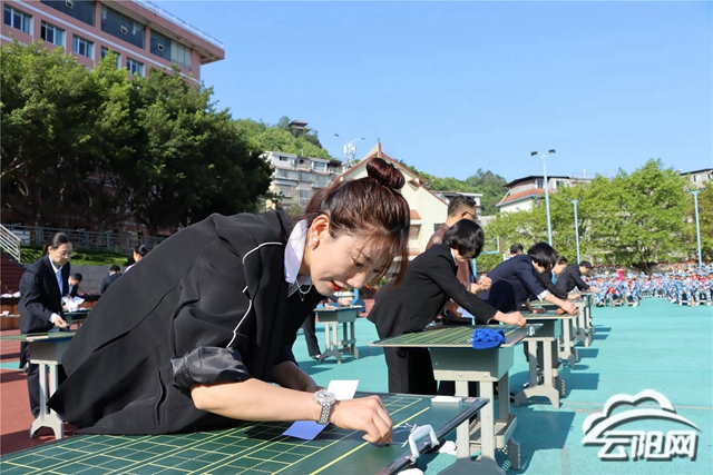 “海軍旗語操”“巴烏演奏”,特色突出; “教師粉筆字現場比賽” “學生車模、航模、艦模競賽”,競爭激烈;英語、音樂、美術、體育教師的英語歌、表演唱、書畫秀、籃球秀,幼兒教師的“燈火里的中國”,精彩紛呈……